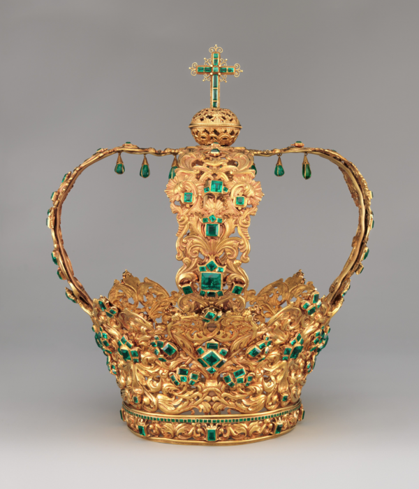 被吉利姐和鐘楚曦作為超現(xiàn)實(shí)雕塑背景的安第斯皇冠,原作是16世紀(jì)最知名的黃金珠寶制皇冠。由西班牙金匠設(shè)計(jì)制作,代表著同時(shí)代最高的珠寶設(shè)計(jì)制作水平。