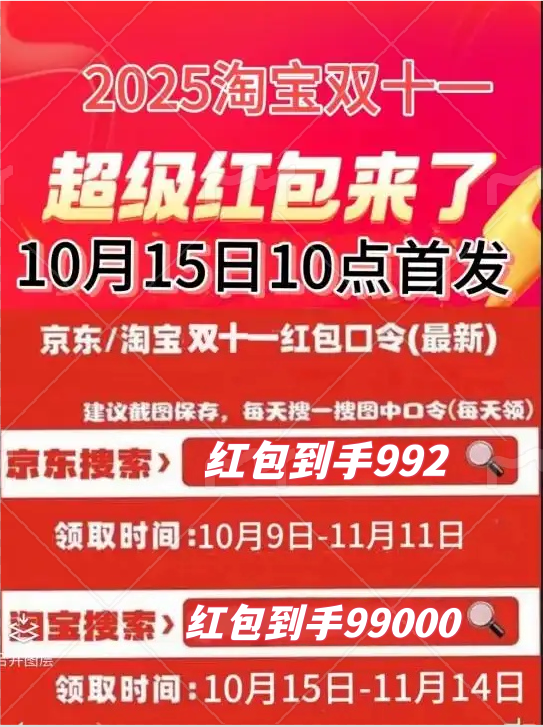 京東APP搜:紅包到手992 (每天領(lǐng)三次?。?0月9日開領(lǐng)一直到11月11日!紅包最高11111元!